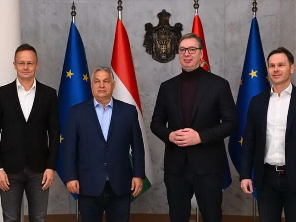 Predsjednik Srbije Aleksandar Vučić sastao se u Beogradu s mađarskim premijerom Viktorom Orbanom i ministrom vanjskih poslova Peterom Szijjartom s kojima je razgovarao o aktuelnim geopolitičkim i regionalnim pitanjima, kao i o jačanju saradnje dviju zemalja.